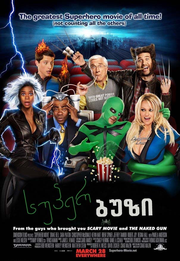 ინფორმაცია ფილმზე დასახელება: სუპერ ბუზი ორიგინალური დასახელება: SuperHero Movie ჟანრი: ფანტასტიკა, კომედია გამოსვლის წელი: 2008 რეჟისორი: კრეიგ მაზინი როლებში:ლესლი ნილსონი, პამელა ანდერსონი, სარა პეკსტონი, კრისტოფერ მაკდონალდსი, ჯეფრი ტემბორი და სხვები